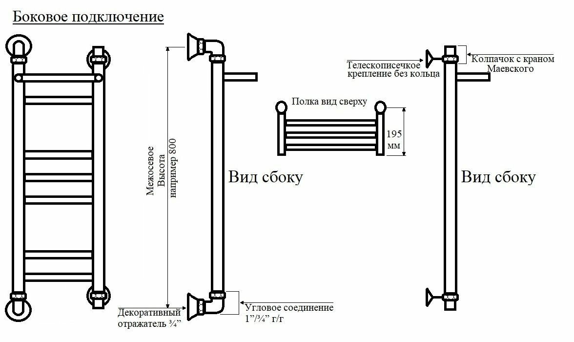 Водяной полотенцесушитель Aquanet Mauro(г2) 800x500