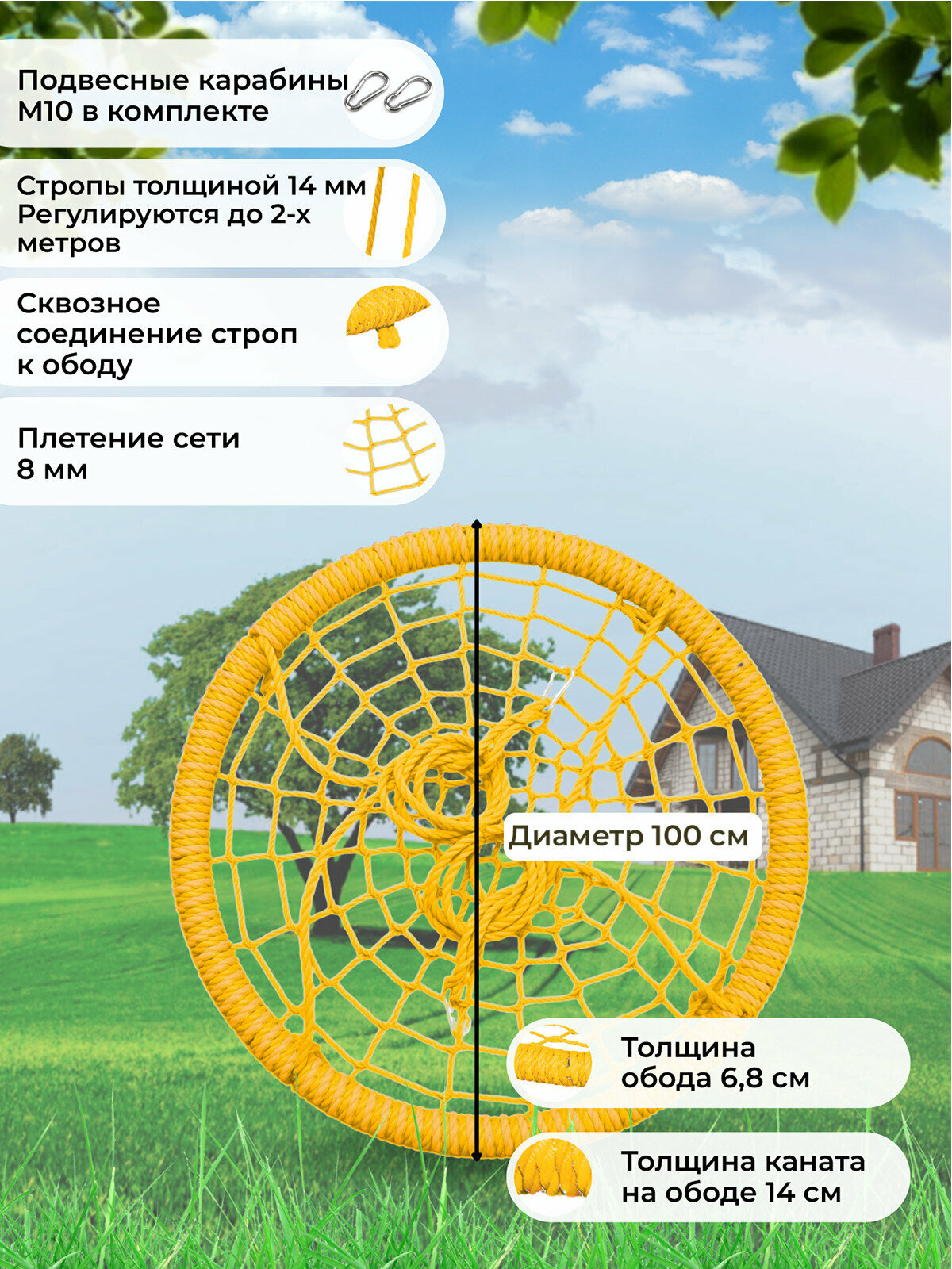 Детские Однотонные качели гнездо закачайся плюс диаметр 100 см цвет Желтый толщина каната сети 8 мм толщина каната обода 14 мм интересное: