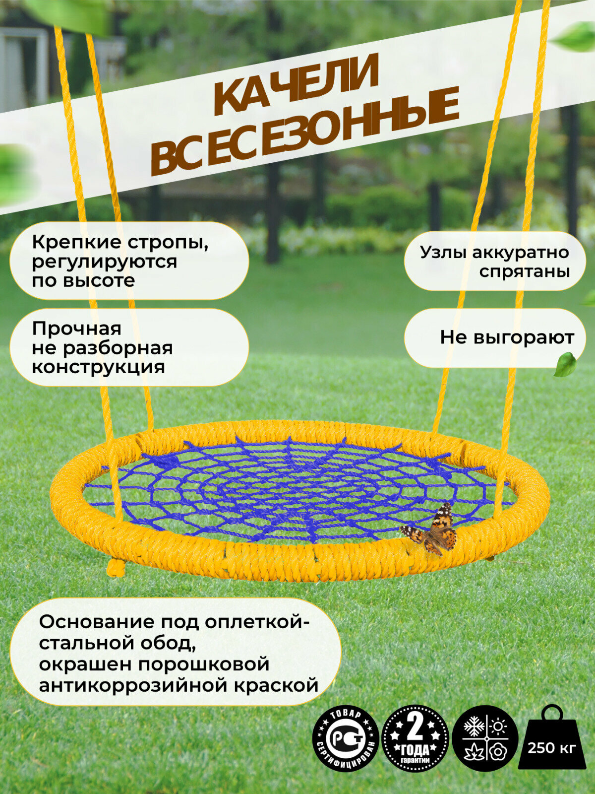 Купить Детские Качели гнездо закачайся плюс диаметр 100 см цвет обода Желтый цвет сети Синий толщина каната обода 14 мм толщина каната сети 8 мм