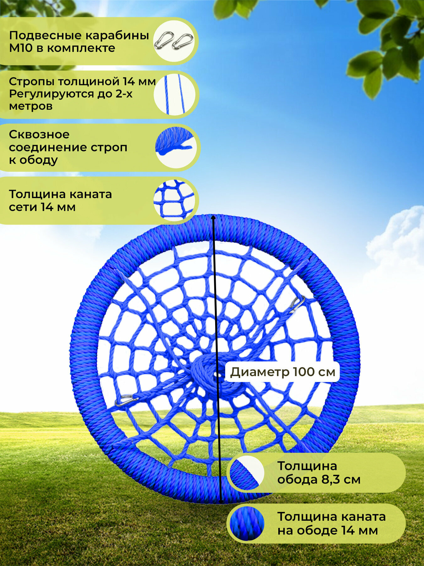 Детские Однотонные качели гнездо PREMIUM диаметр 100 см цвет Синий толщина каната 14 мм интересное: