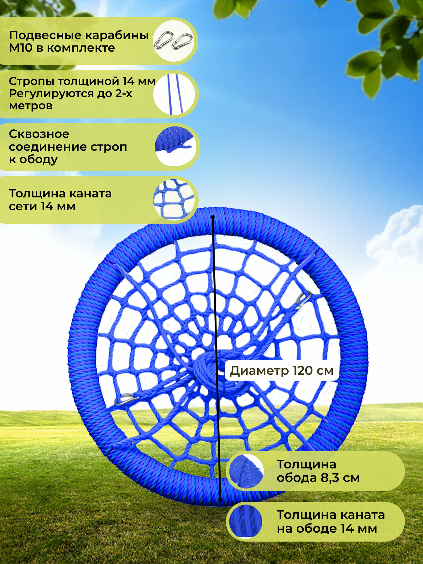 Детские Однотонные качели гнездо PREMIUM диаметр 120 см цвет Синий толщина каната 14 мм интересное:
