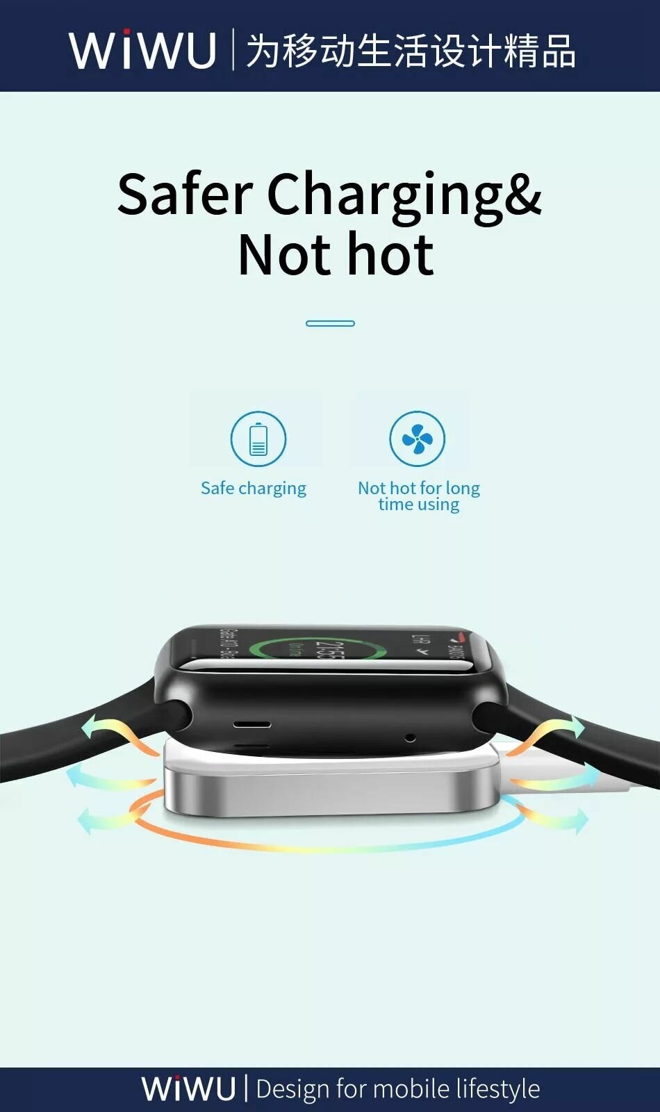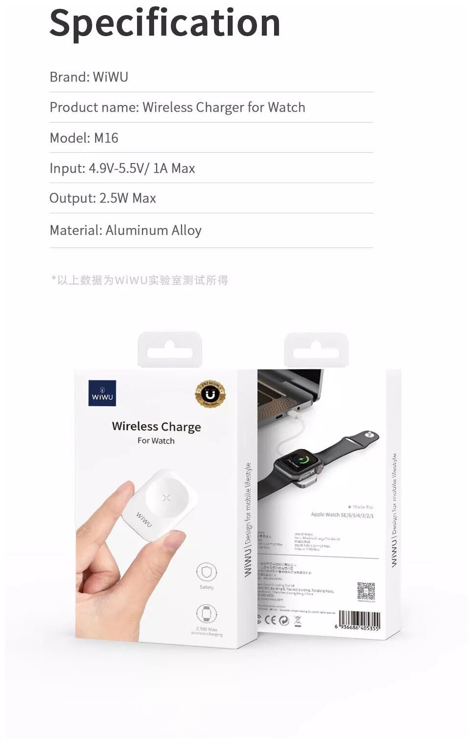 Беспроводное зарядное устройство для Apple Watch 1-6/SE series, WiWU M16, 2.5W, Белый+Серебристый