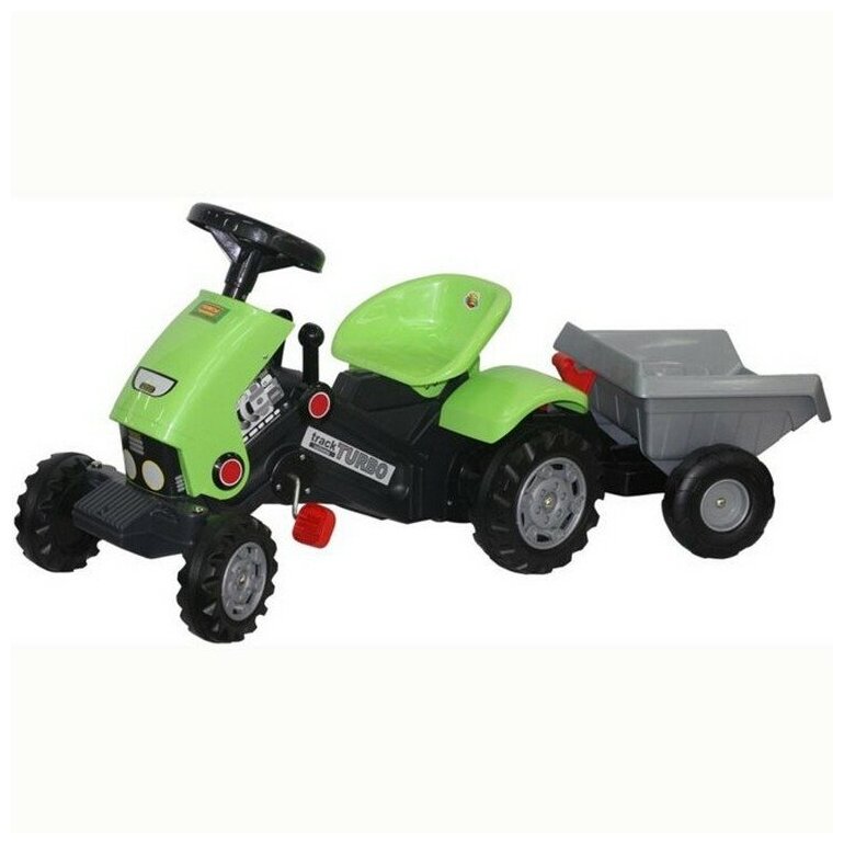 Каталка-трактор с педалями Turbo-2 с полуприцепом (зеленая) 52742 Полесье интересное: