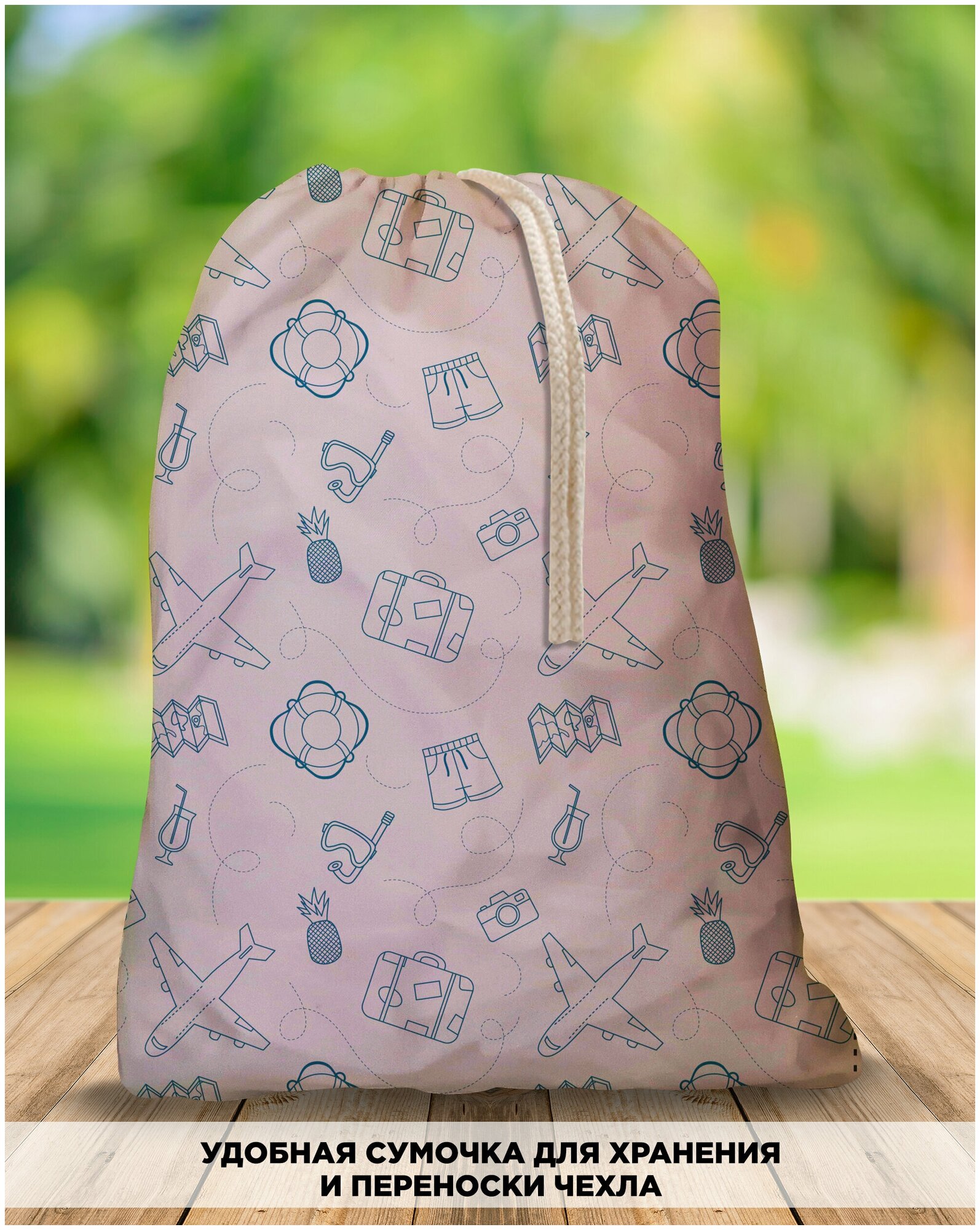 Чехол для чемодана CVT / Размер S (до 56см высотой) / Дизайнерский чехол / Чехол с рисунком / Защитный чехол / Артикул CVT-BAG-S-07 / Бифлекс / Зеленый, Пора в отпуск / Оригинальный подарок /