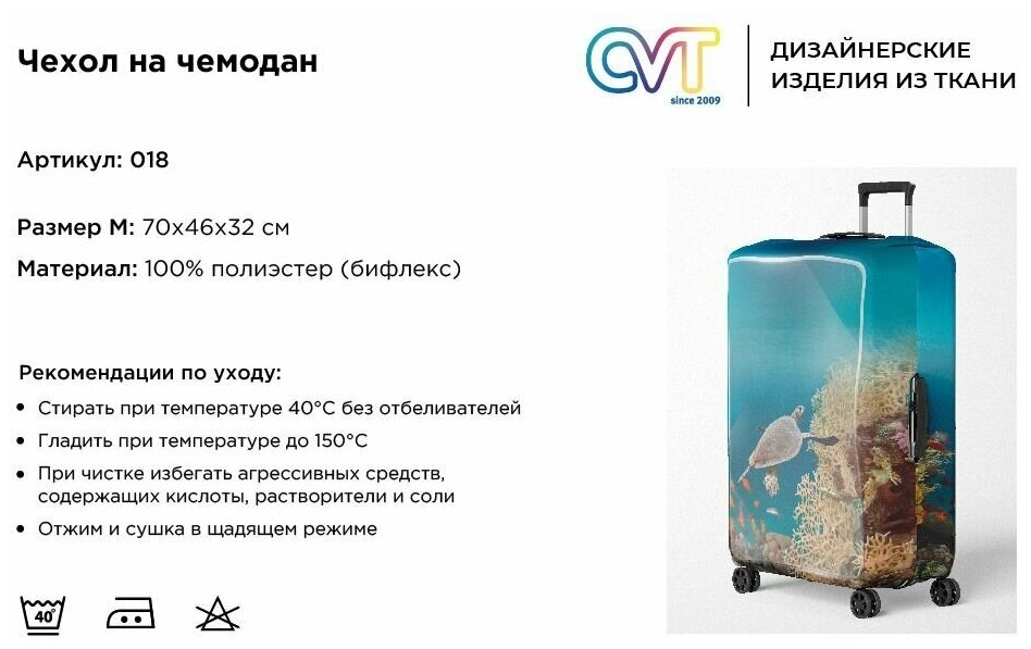 СохранитьЧехол для чемодана CVT Размер M (до 71см высотой), Дизайнерский с рисунком Защитный, Бифлекс Голубой, Подводный мир, Оригинальный подарок интересное: