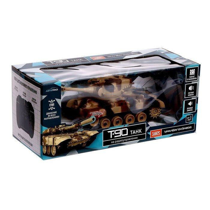 Танк радиоуправляемый Т90, работает от аккумулятора, свет и звук, цвет коричневый , 1 шт. интересное: