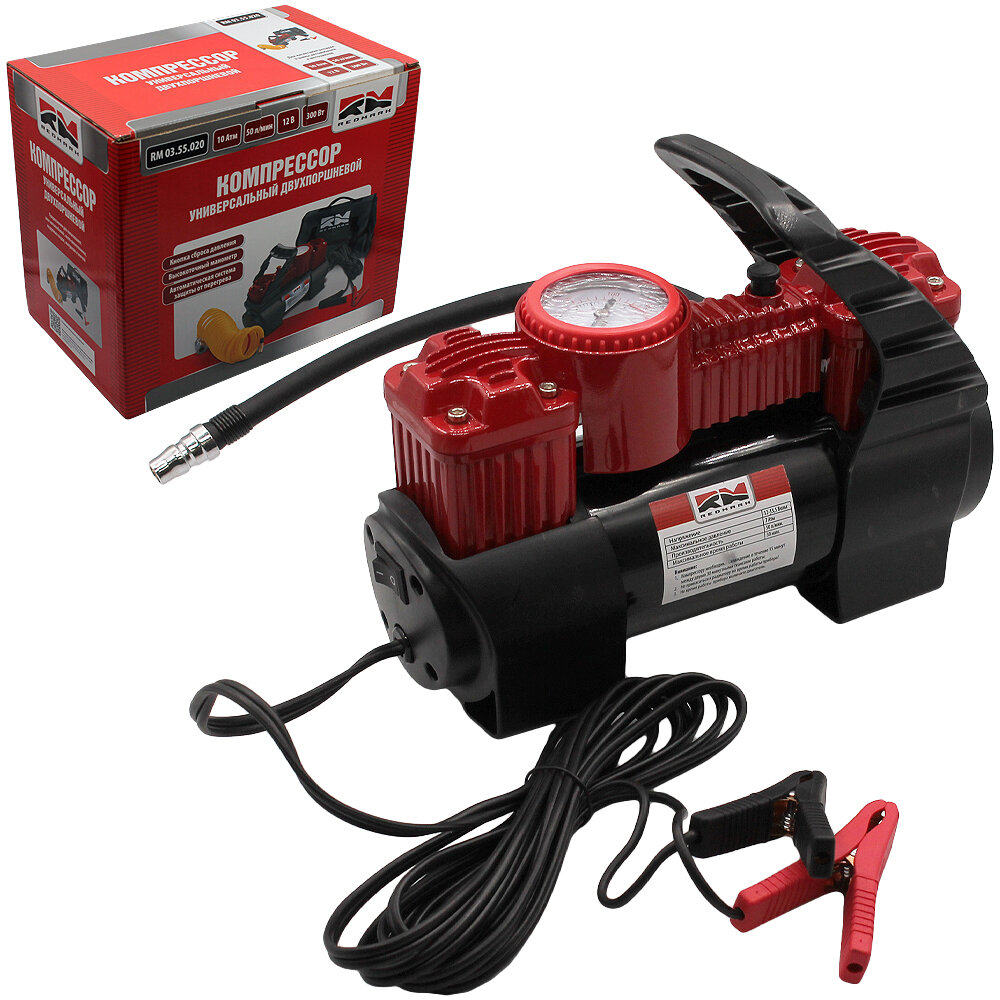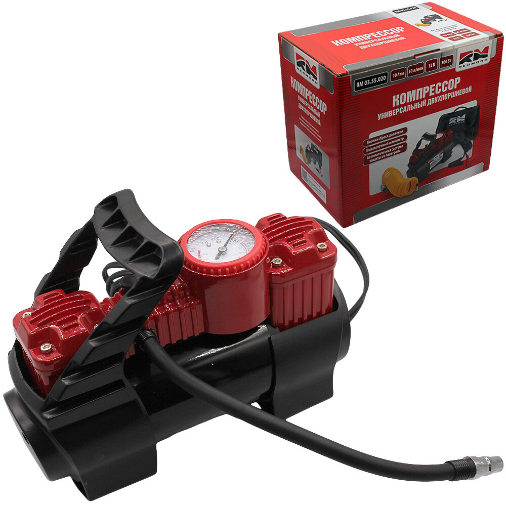REDMARK RM0355020 Компрессор автомобильный 50л/мин. 10атм. 300W 12V двухпоршневой REDMARK