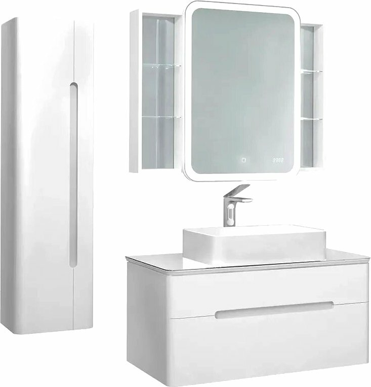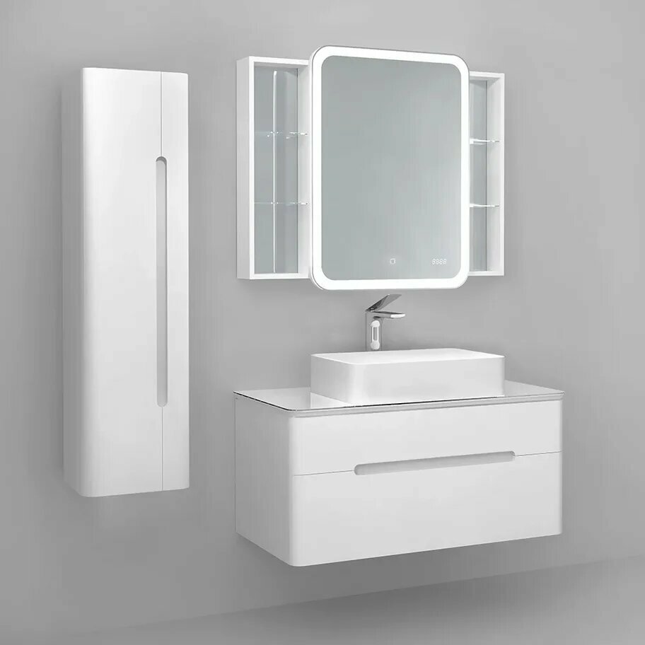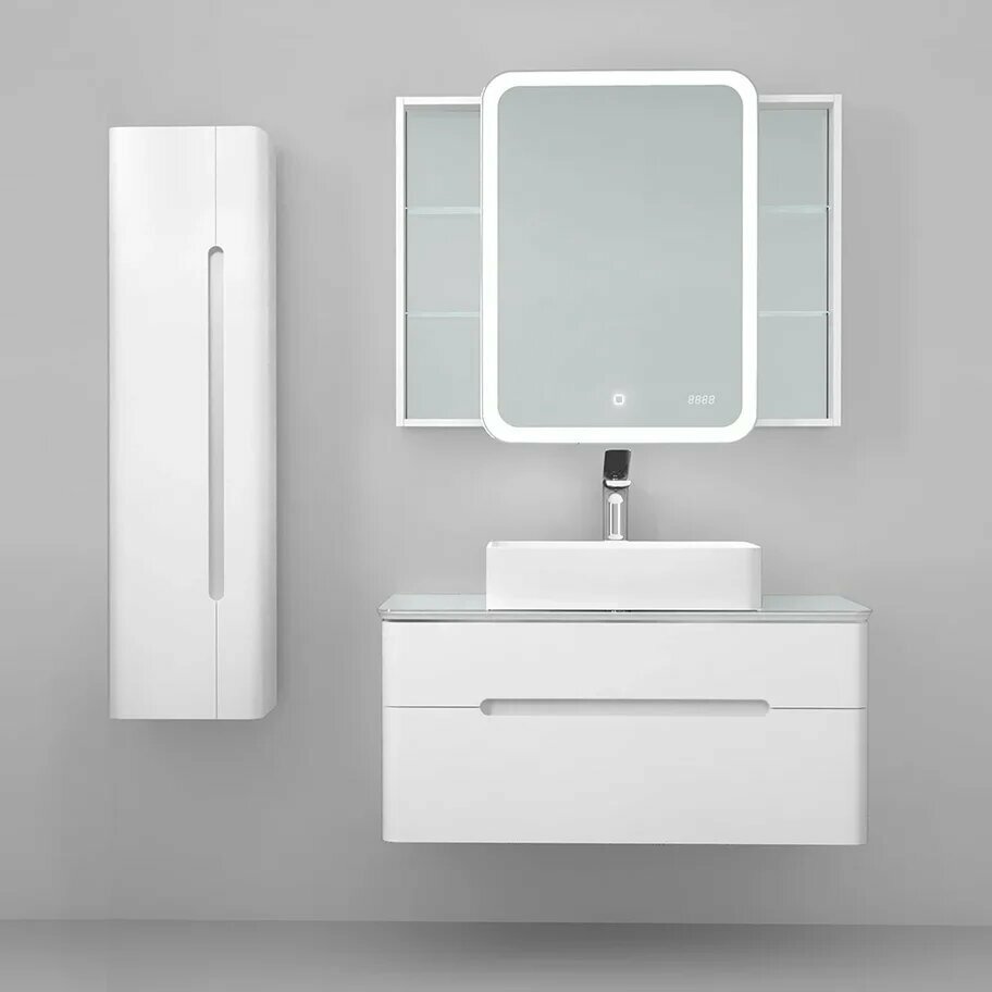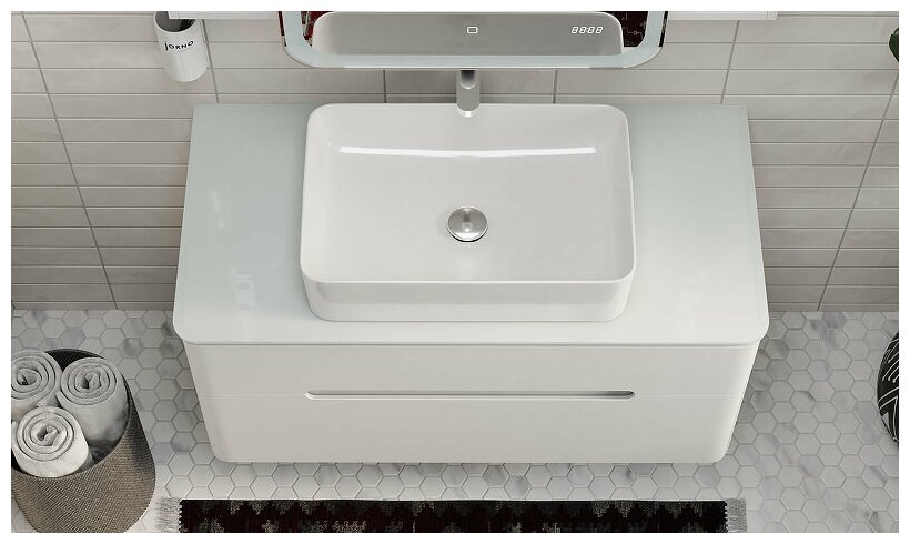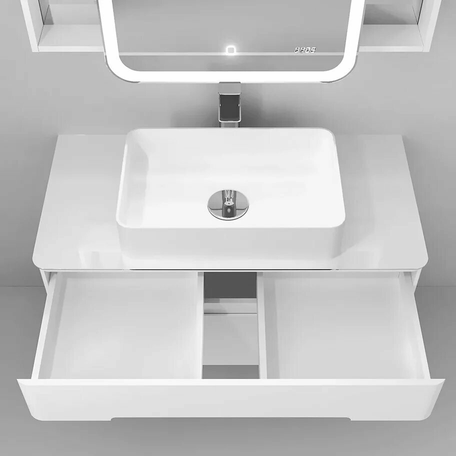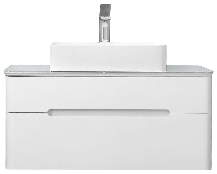 Подвесная тумба под раковину Jorno Bosko 100, со стеклянной столешницей, цвет белый