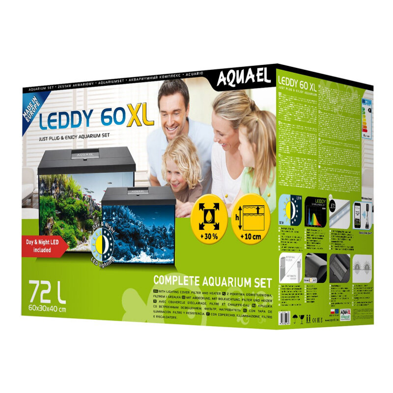 AQUAEL Аквариум LEDDY XL 60 D/N 2.0 черный / 72л прямой, 60х30х40см. Комплектация: крышка, свет Leddy Tube 10Вт Day&Night 2.0, фильтр ASAP 300, нагреватель FIX2 100W. (Польша)