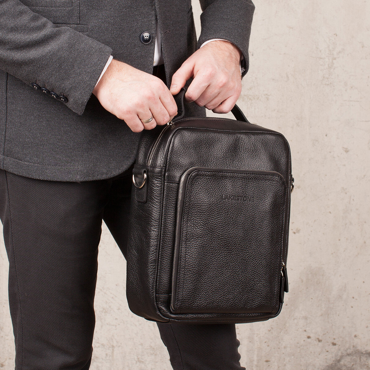 Черная кожаная деловая сумка Lakestone Garnet Black интересное: