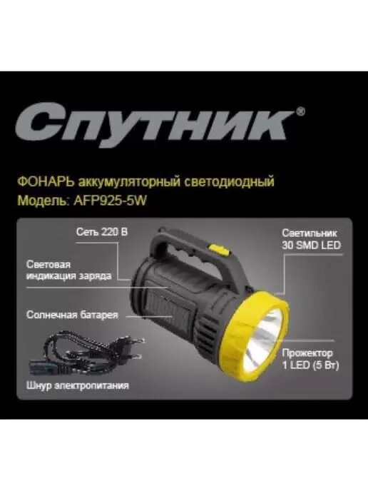 Фонарь аккумуляторный светодиодный AFP925-5W, спутник