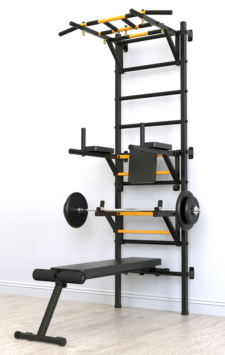 Шведская стенка с турником и брусьями. Спортивный комплекс со скамьей Богатырь 3в1