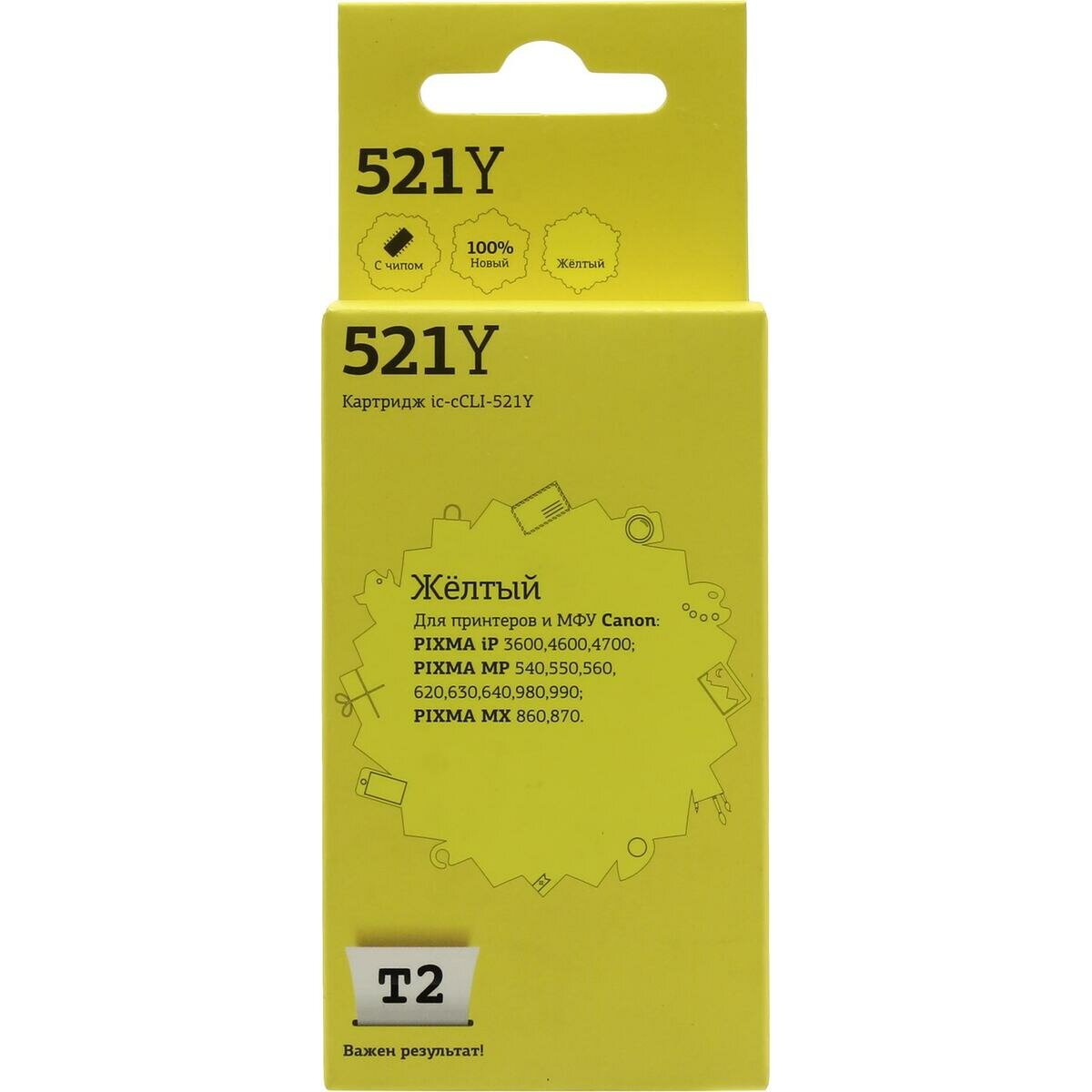 T2 Расходные материалы CLI-521Y Картридж IC-CCLI-521Y для PIXMA iP3600 4600 MP540 620 630 980, желтый, с чипом