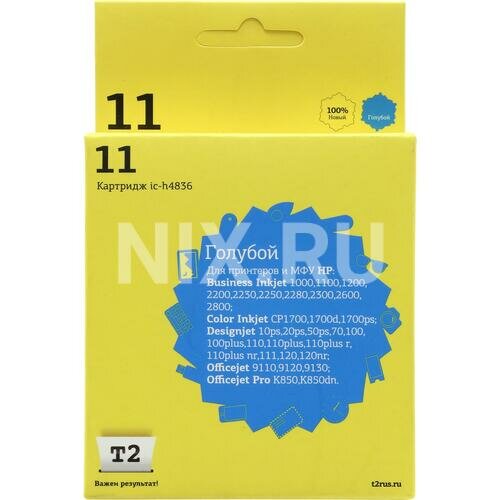 T2 Расходные материалы C4836A Картридж 11 IC-H4836 для HP Business InkJet 1200 2200 2600 2800 CP1700 Pro K850, голубой, 1750 стр.