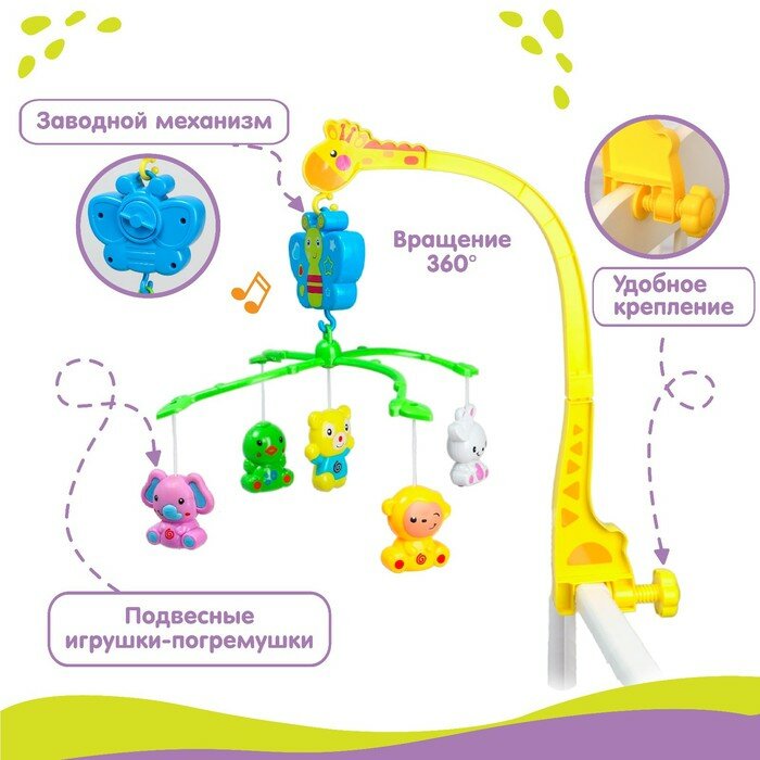 Мобиль музыкальный «Бабочка. Малыш зоо», заводной интересное: