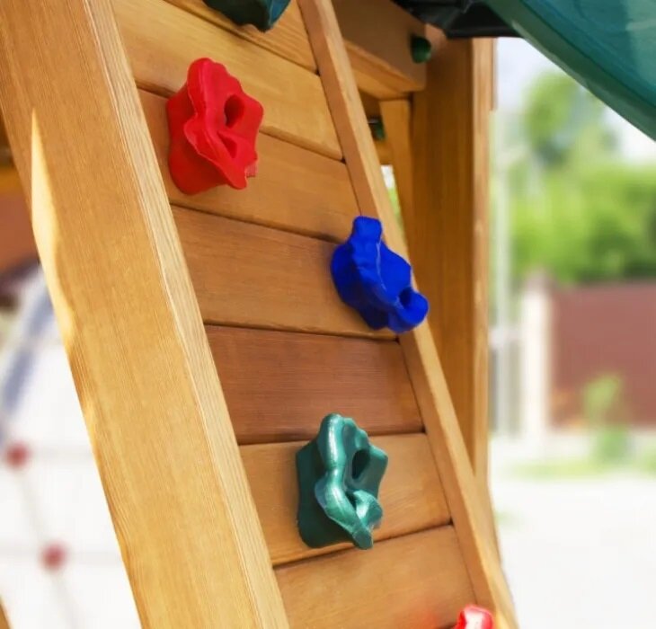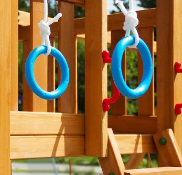 | В комплекте | веревочная лестница, гимнастические кольца, горка, канат, качели, лестница, навес, песочница, сетка для лазания, скалолазная стенка |