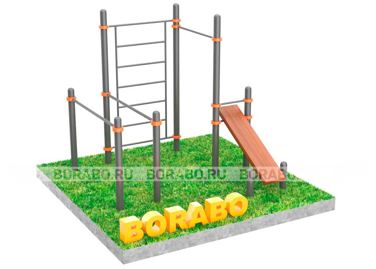 Купить Воркаут комплекс для улицы и дачи Borabo с шведской стенкой, турником, брусьями и скамьей для пресса