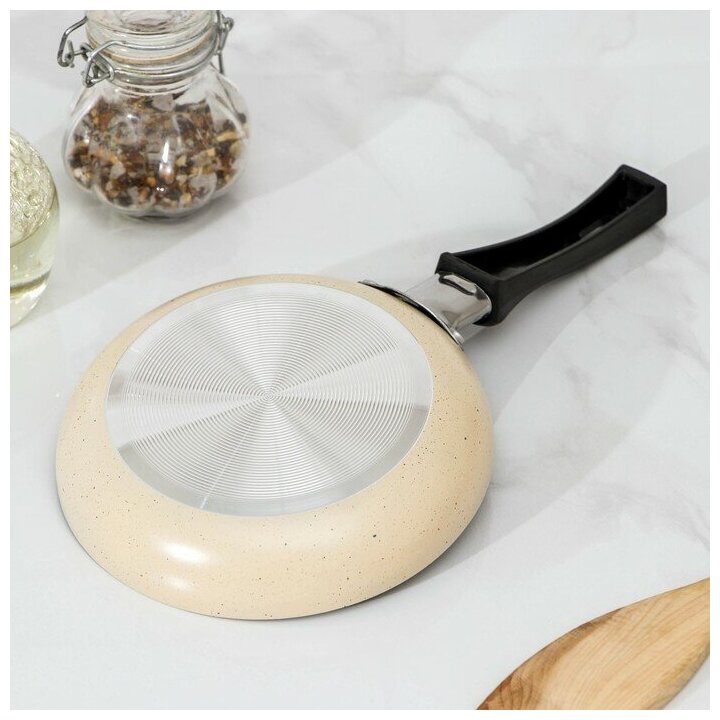 Сковорода «Стоун», d=14,3 см, пластиковая ручка, антипригарное покрытие, цвет бежевый