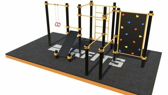Воркаут-комплекс: скалодром, шведская стенка, кольца, 3 турника, брусья и наклонная скамья K-040 интересное: