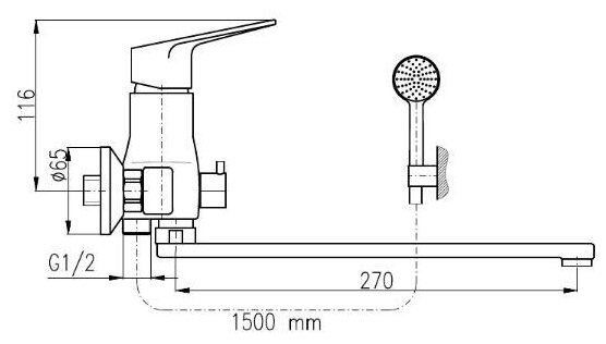 Смеситель для ванны WasserKRAFT Dinkel 5801, рычажный
