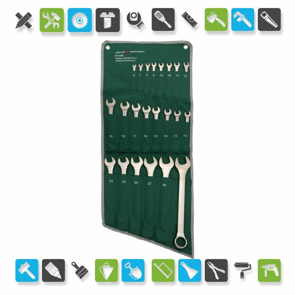 Набор Ключей Комбинированных - 22 Шт. (6 7 8 9 10 10 11 12 13 13 14 15 16 17 18 19 21 22 24 27 30 32 Дело Техники арт. 511220