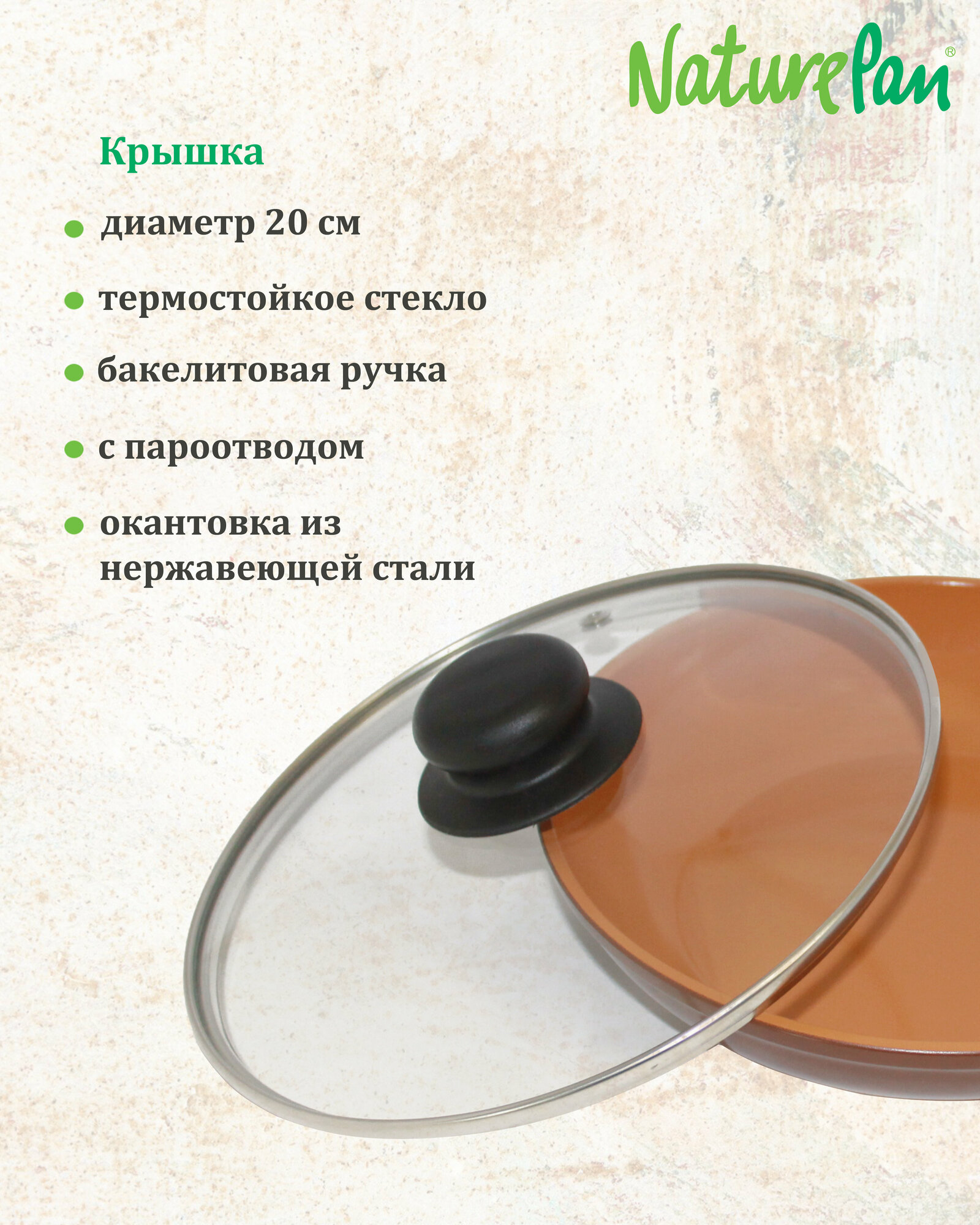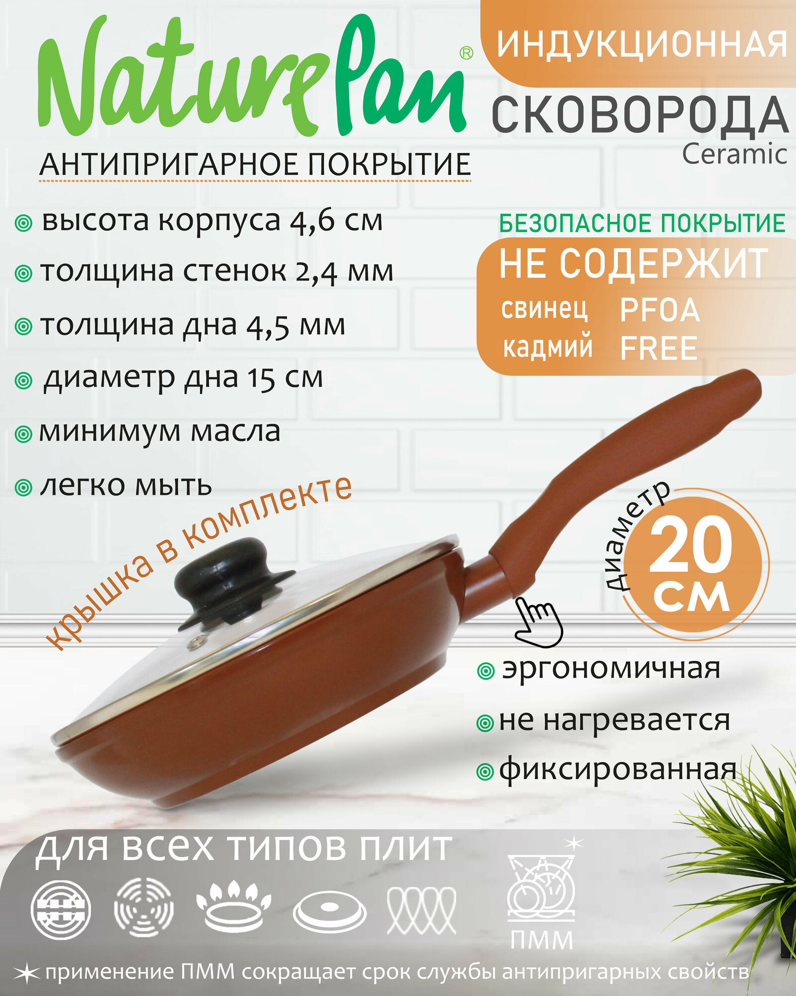 Сковорода с крышкой NaturePan Ceramic индукция 20см интересное: