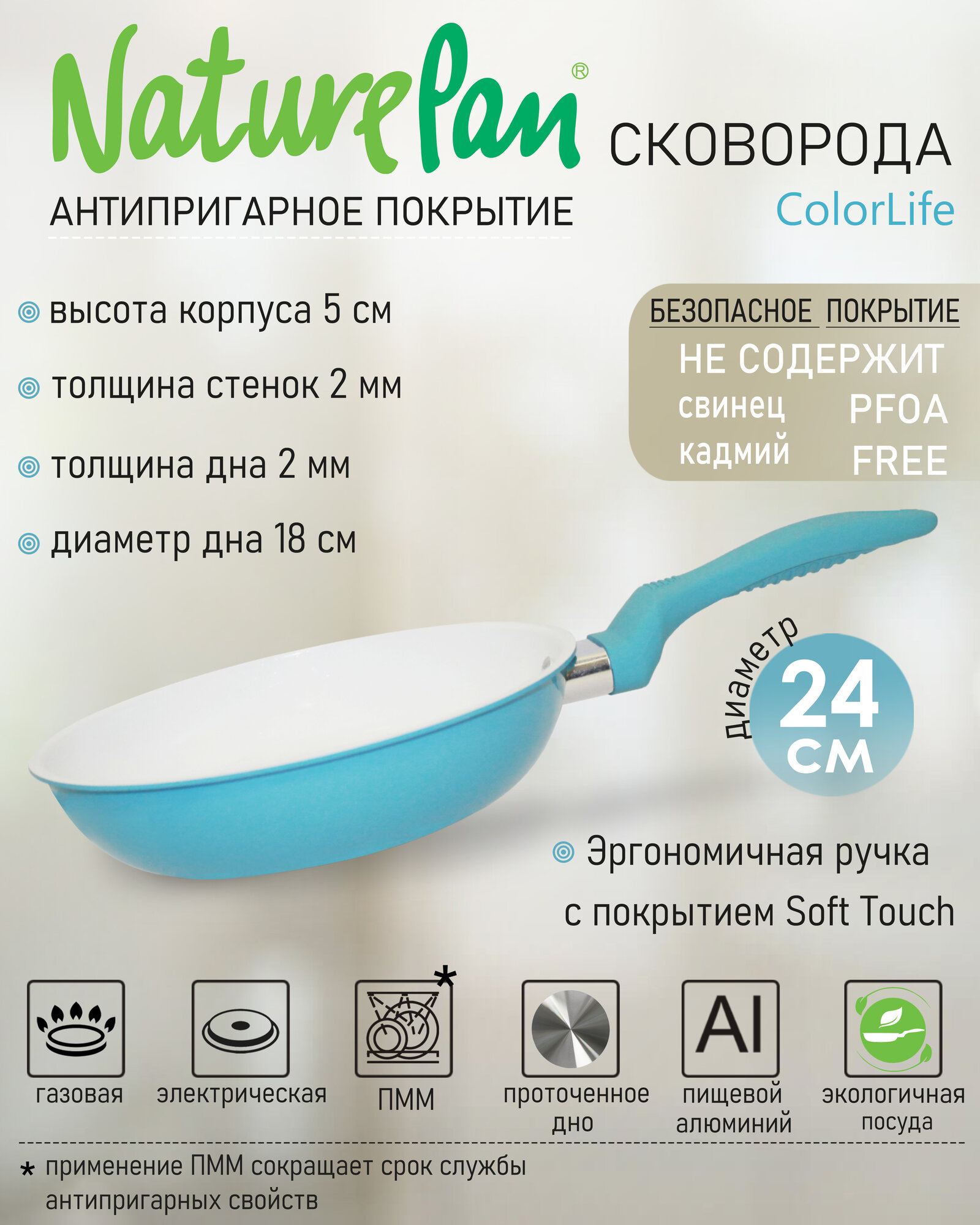 Сковорода NaturePan ColorLife 24см (голубой) интересное: