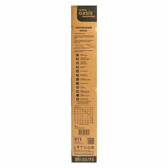 Насос скважинный Oasis SNR 85/75, центробежный, 750 Вт, напор 75 м, 85 л/мин, кабель 40 м OASIS 3634 .