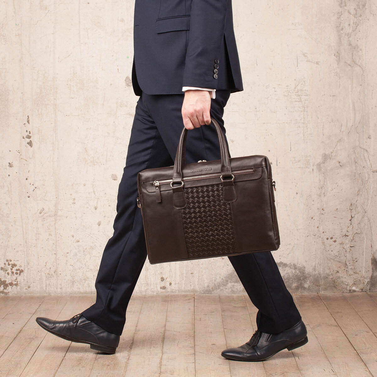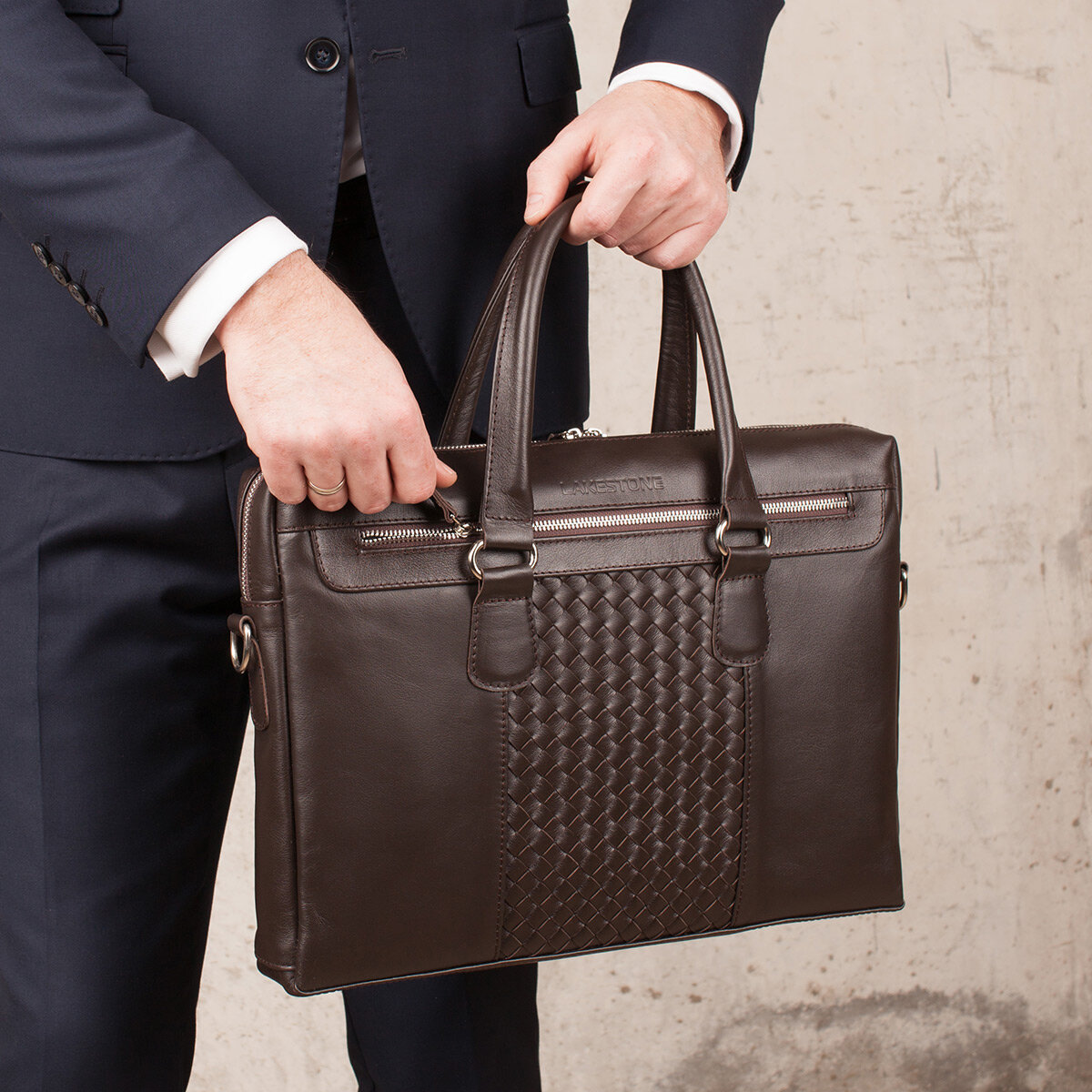 Коричневая деловая сумка с плетением Lakestone Bramley Brown интересное: