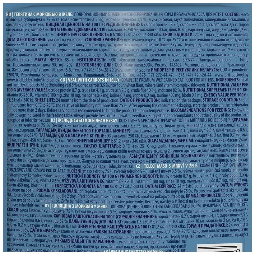 Ниже Вы можете прочитать отзывы на Пауч Brit Premium для котят телятина с морковью в желе 85г, ознакомится с подробными характеристиками, посмотреть интересные обзоры и фотографии на Пауч Brit Premium для котят телятина с морковью в желе 85г.