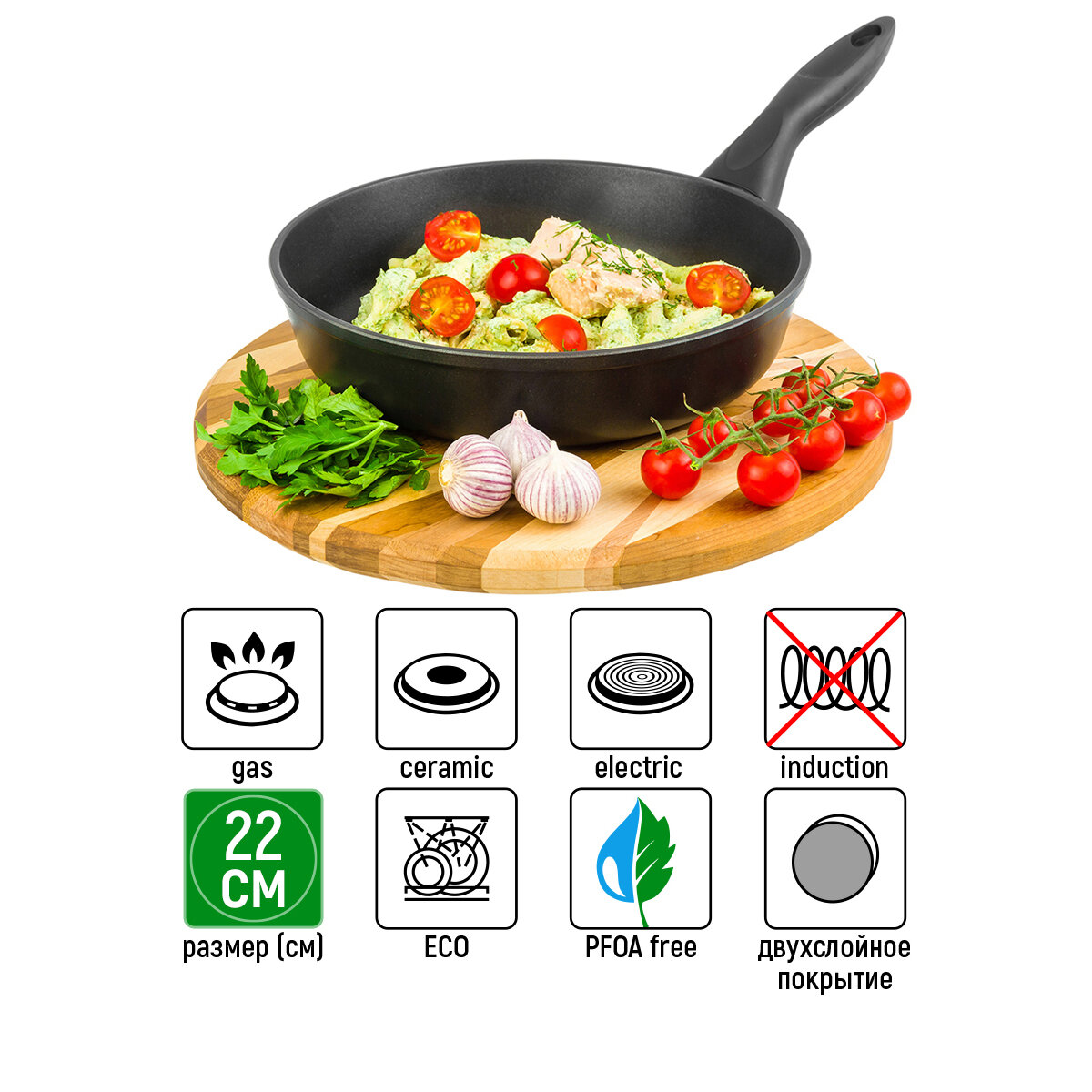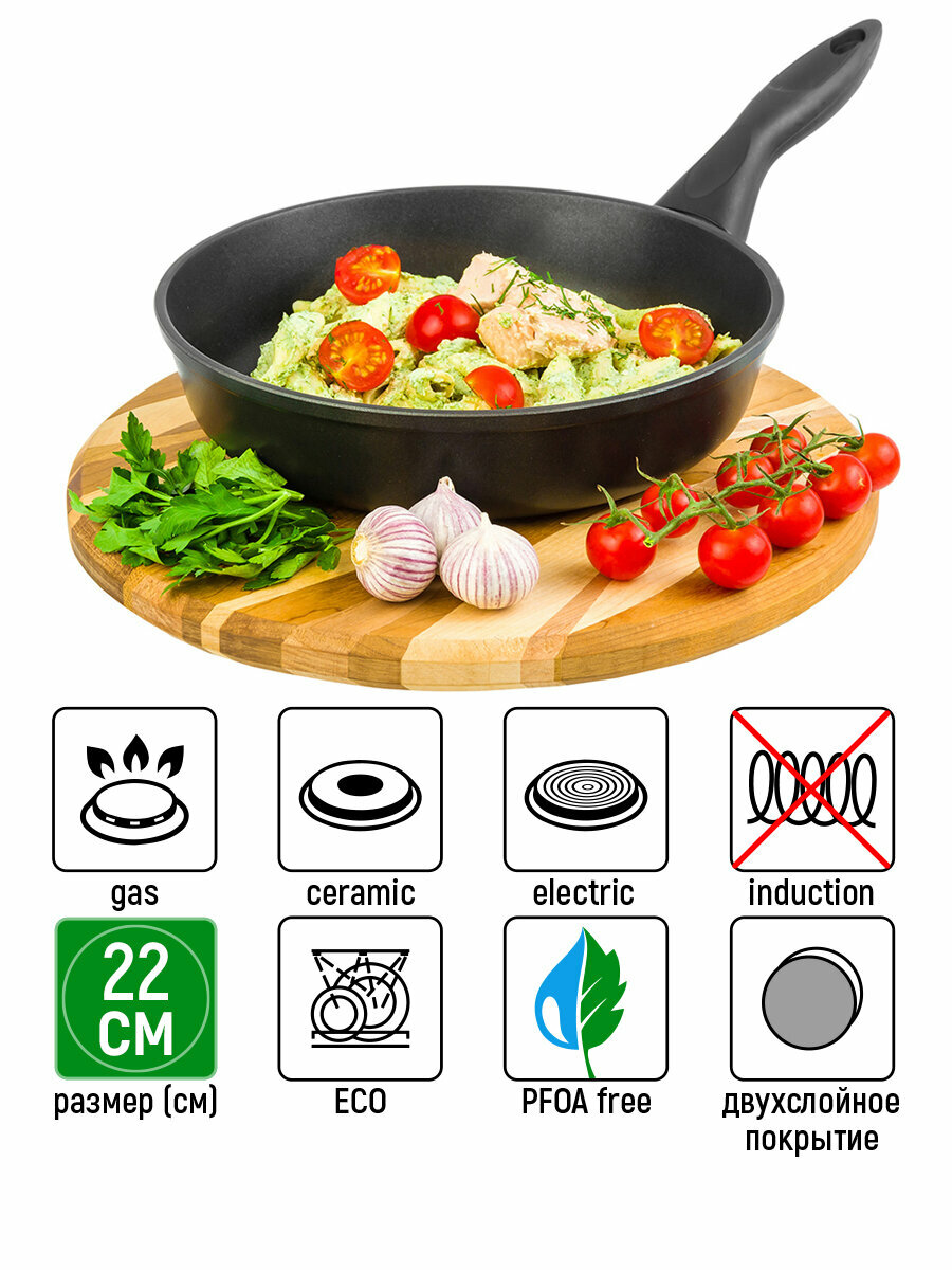 Сковорода глубокая 22 см Elan Gallery гармония вкуса Черный Оникс, несъёмная ручка интересное:
