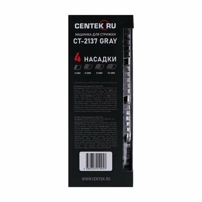 Машинка для стрижки CENTEK CT-2137, черная интересное: