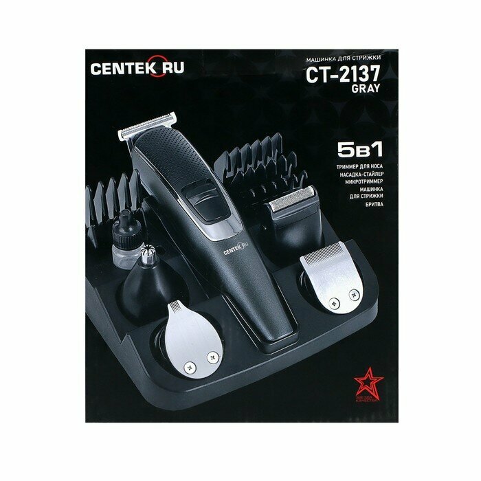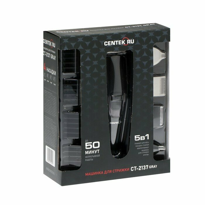 Машинка для стрижки Centek CT-2137, 5 Вт, 8 насадок, масло, АКБ, серая , 1 шт. интересное: