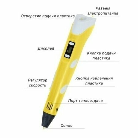 Комплект 3Д ручка NIT-PEN3 желтая + пластик PLA 10 цветов по 10 метров, в упаковке: 1