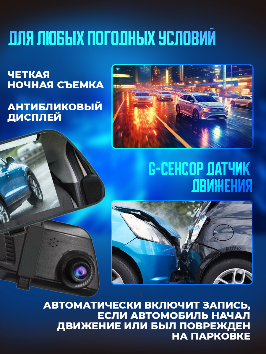 Купить Автомобильный видеорегистратор, зеркало видеорегистратор с камерой заднего вида