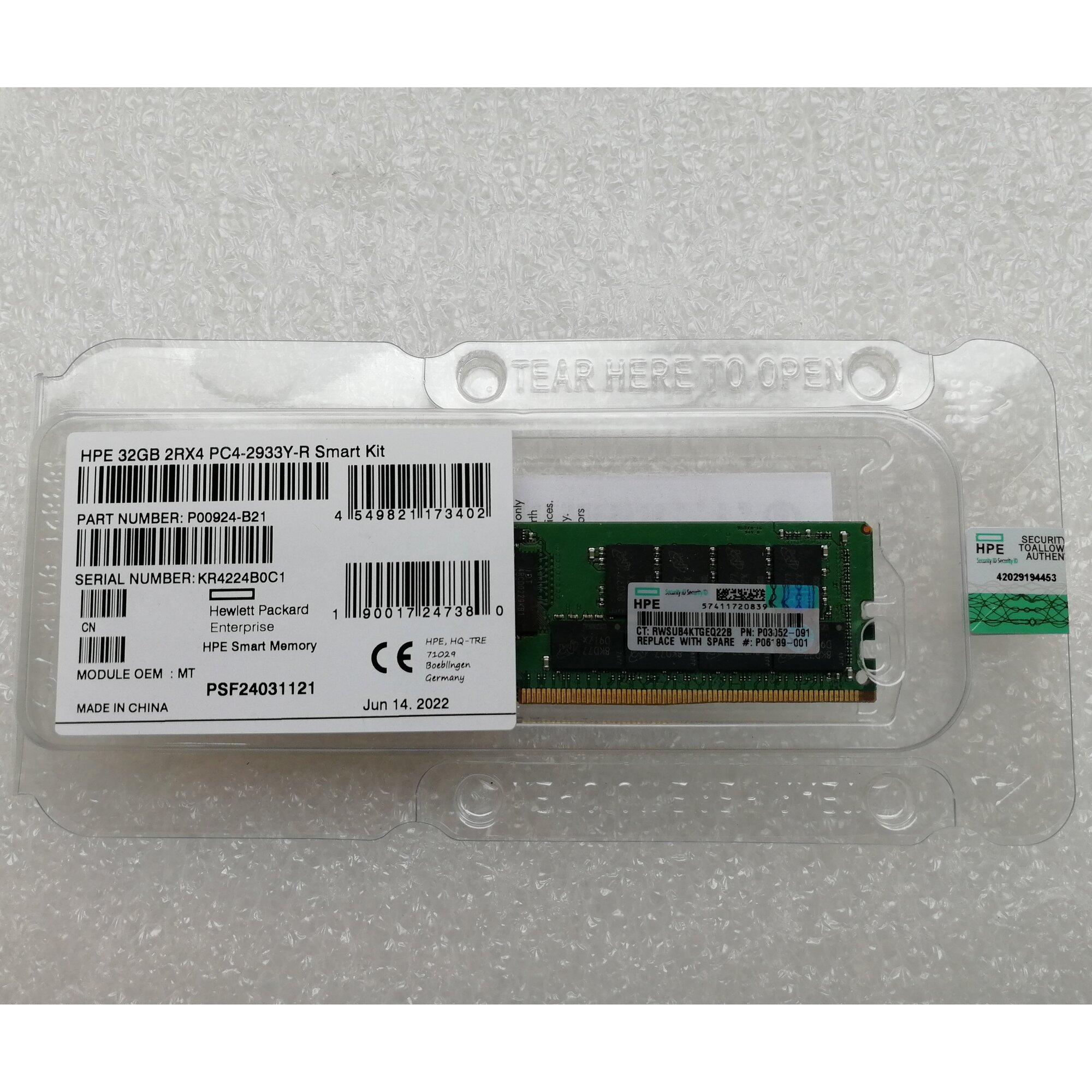 Модуль памяти P00924-B21 32GB (1x32GB) Dual Rank x8 DDR4-2933 CAS-21-21-21 Registered Memory Kit .