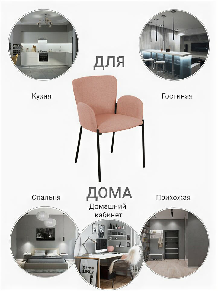 Стул мягкий с подлокотниками Joy пудровый / Стулья для кухни / Стулья кухонные со спинкой / Мебель / Стул мягкий / Стул кресло / Стул обеденный