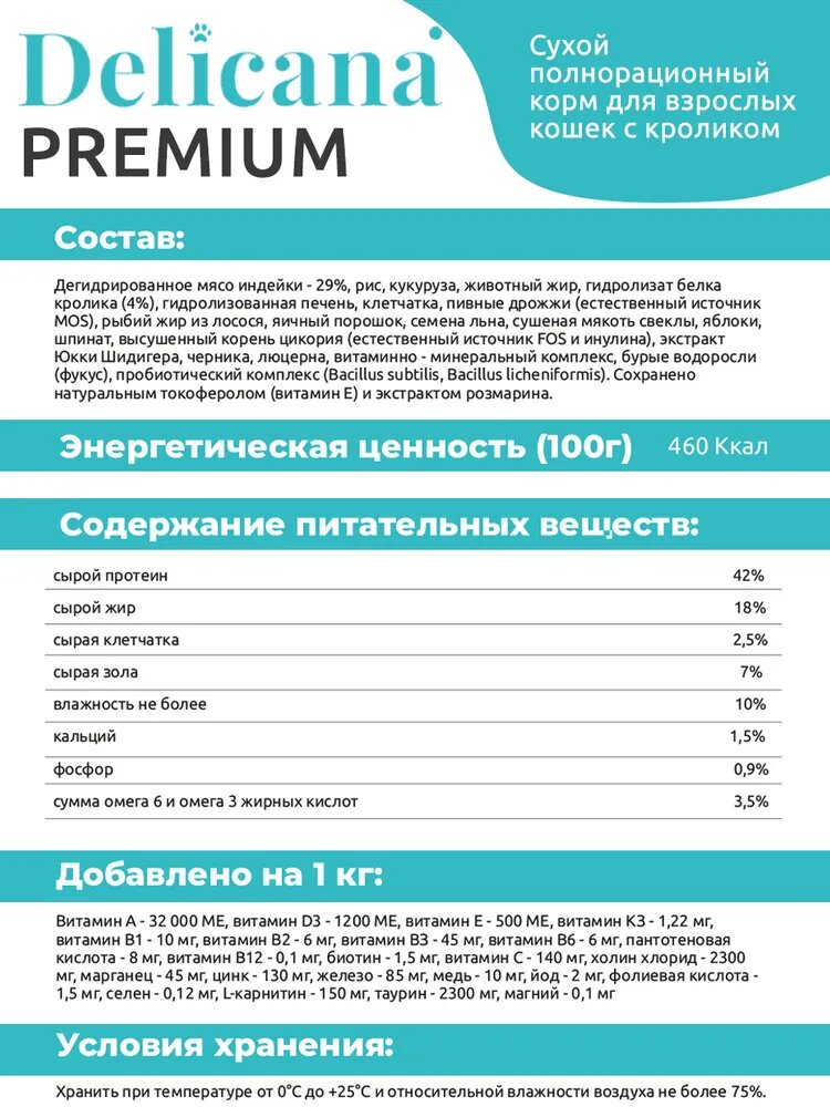 DELICANA Корм сухой для кошек Кролик с витаминами, минералами и микроэлементами 1,5 кг