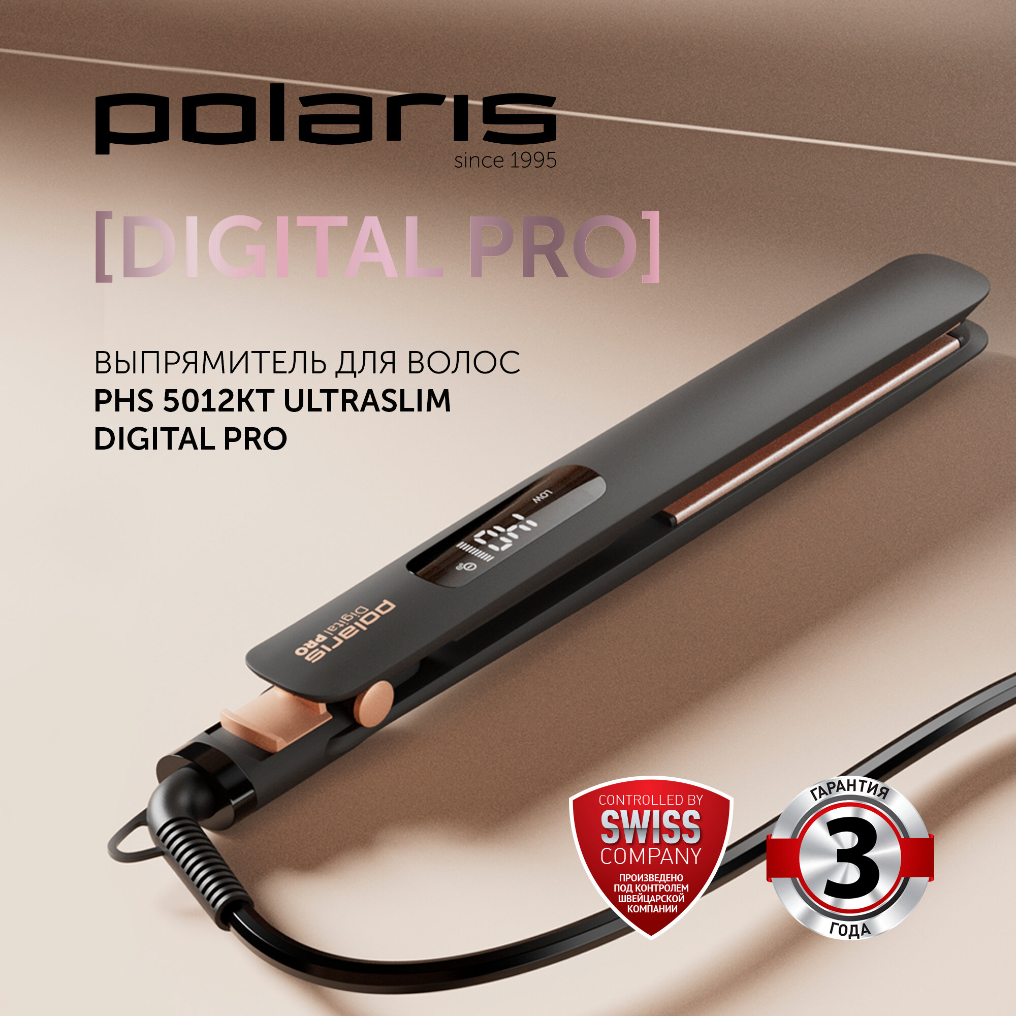Стайлер Polaris PHS 5012KT UltraSlim Digital PRO Черный/Розовое золото .
