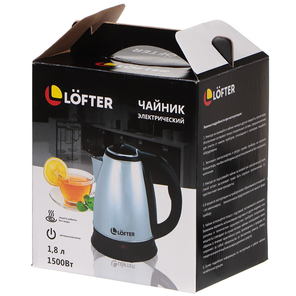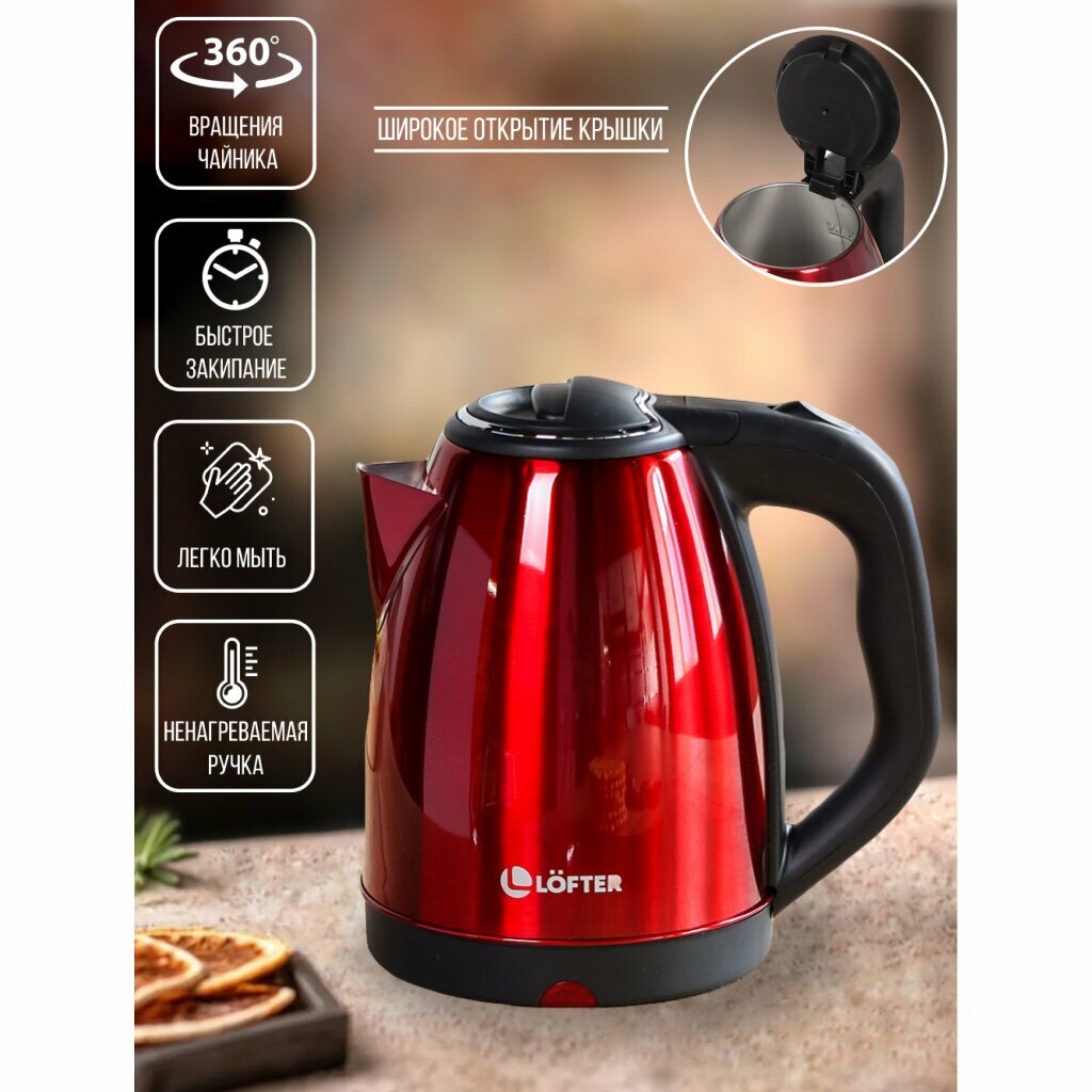 Купить Чайник электрический Lofter, H3, красный, 1.8 л, 1500 Вт, скрытый нагревательный элемент, металл