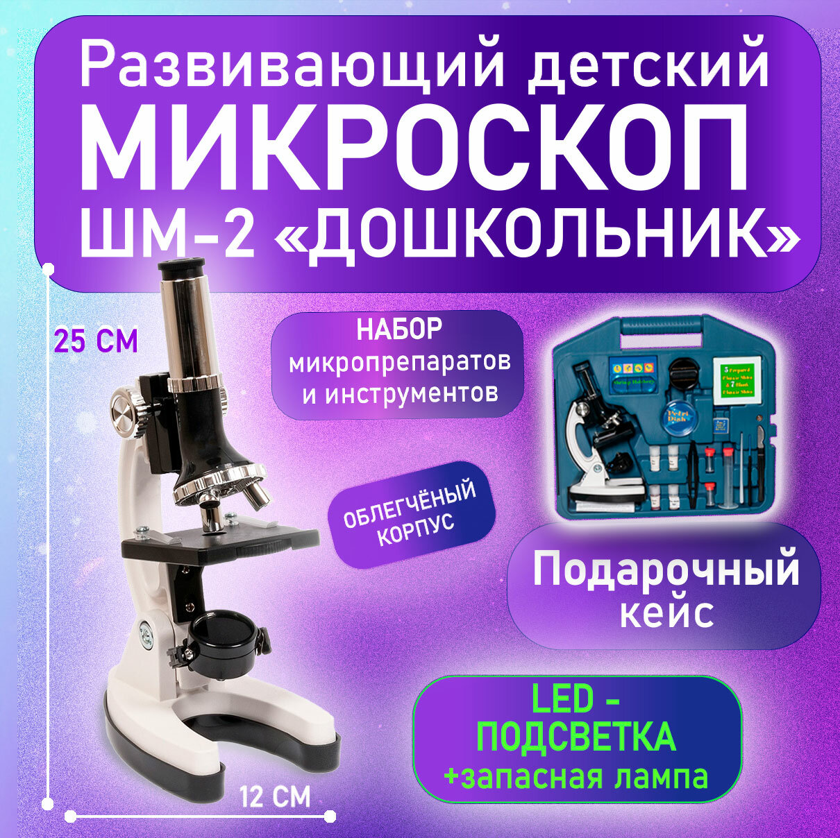 Микроскоп учебный биолаб Дошкольник ШМ-2 интересное: