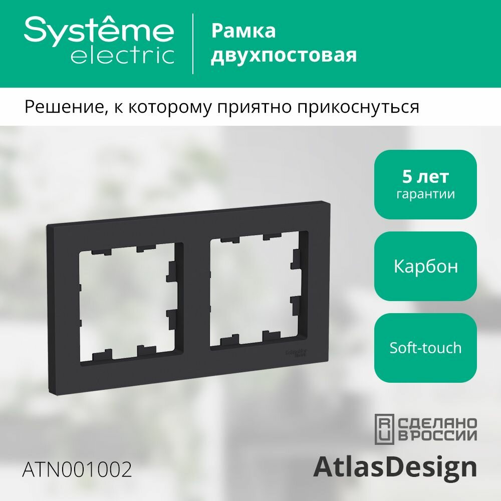 Рамка Systeme Electric Atlas Design двойная для розеток и выключателей черный матовый-карбон - 2 шт.