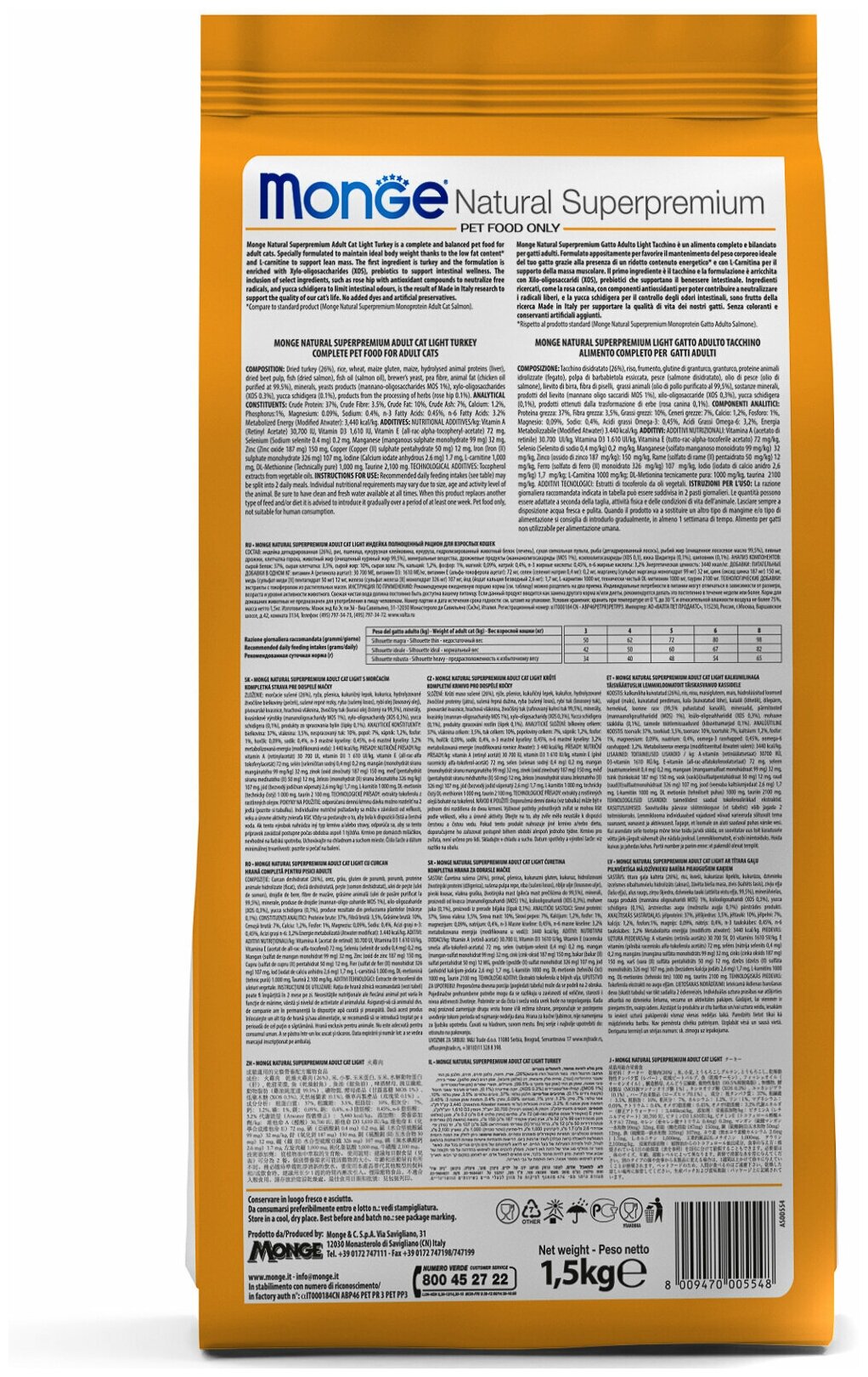 Купить Monge Cat Speciality Light низкокалорийный корм для кошек с индейкой 1,5 кг х 2шт.