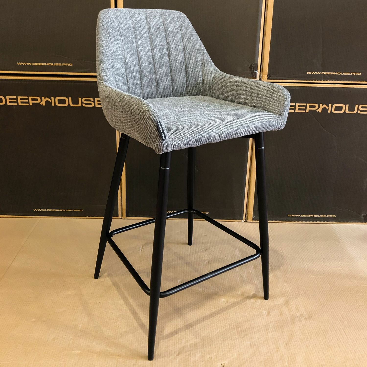 Стул барный DeepHouse Стул Гамбург темно-серая ткань ножки черные для дома/для гостиной/для столовой/для кафе /кухонный стул/стул кухонный