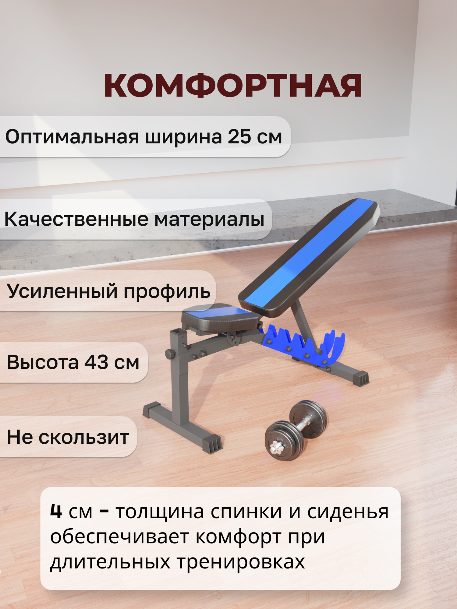 Универсальная атлетическая скамья Sportlim Orion Черно-синяя интересное: