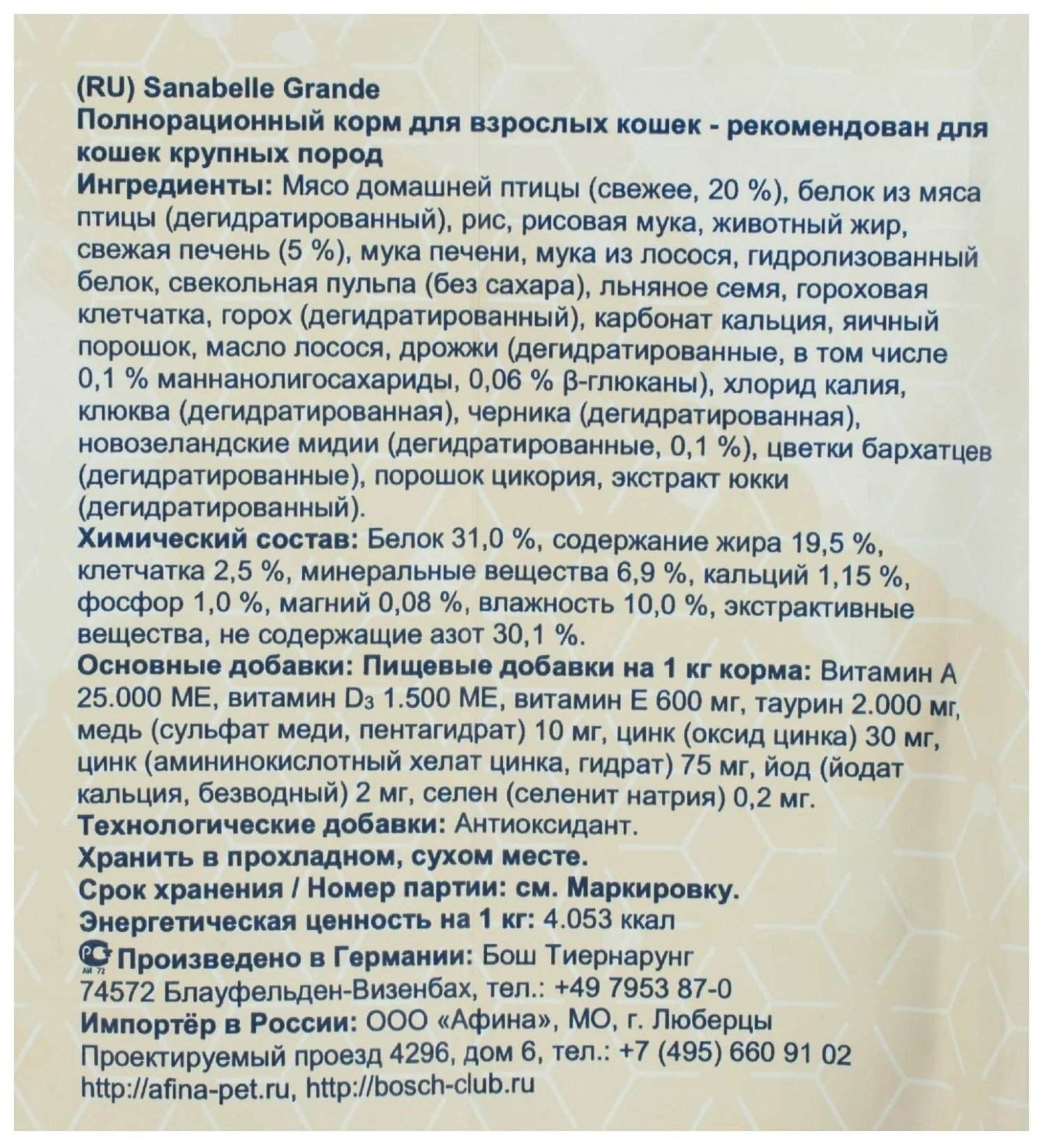 Корм для кошек крупных пород сухой Bosch Sanabelle Grande, 10 кг