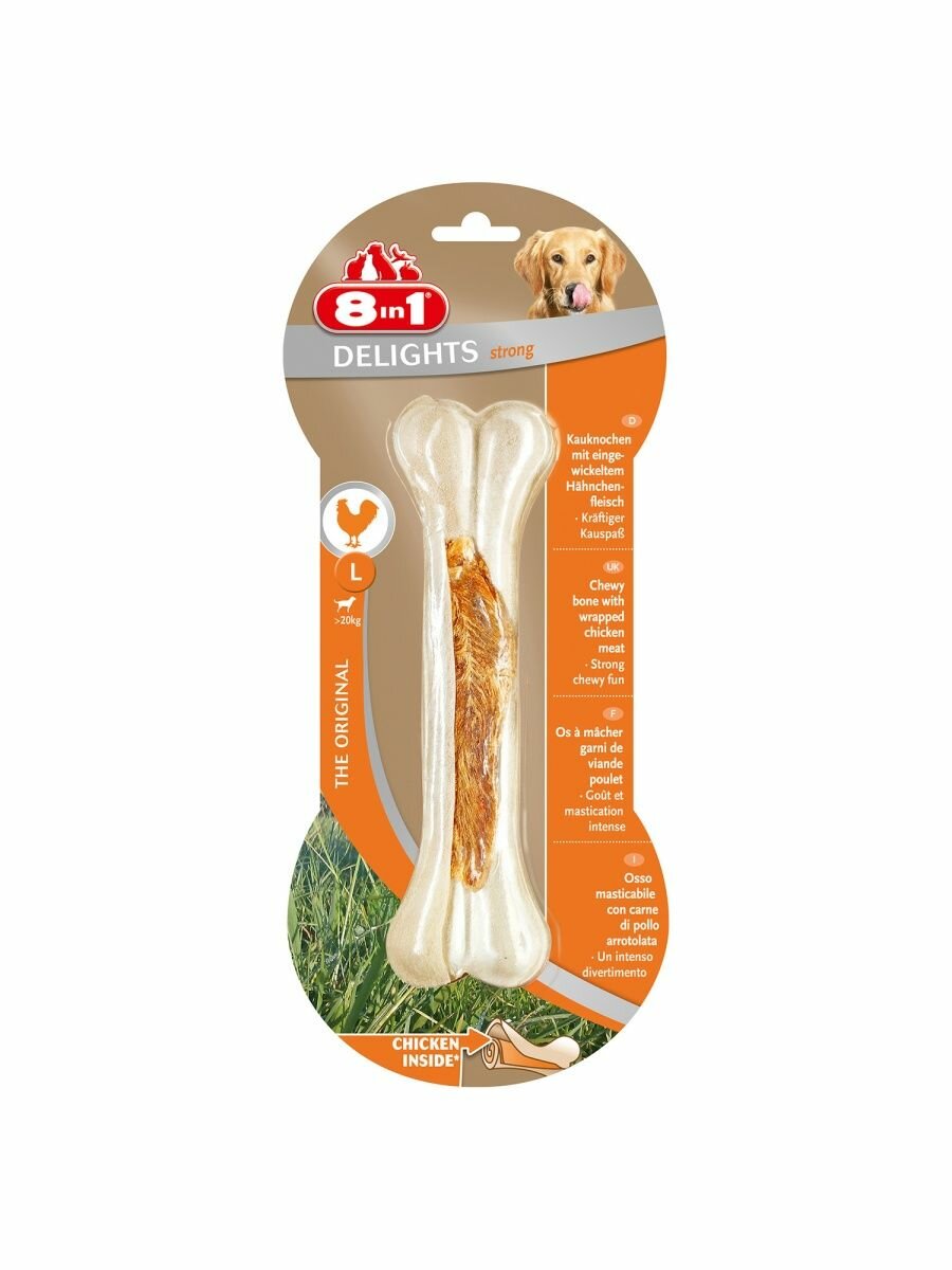 Купить Косточка прессованная 8in1 Delights Strong для собак, с куриным мясом в жесткой говяжьей коже, L (21 см), 1 шт.