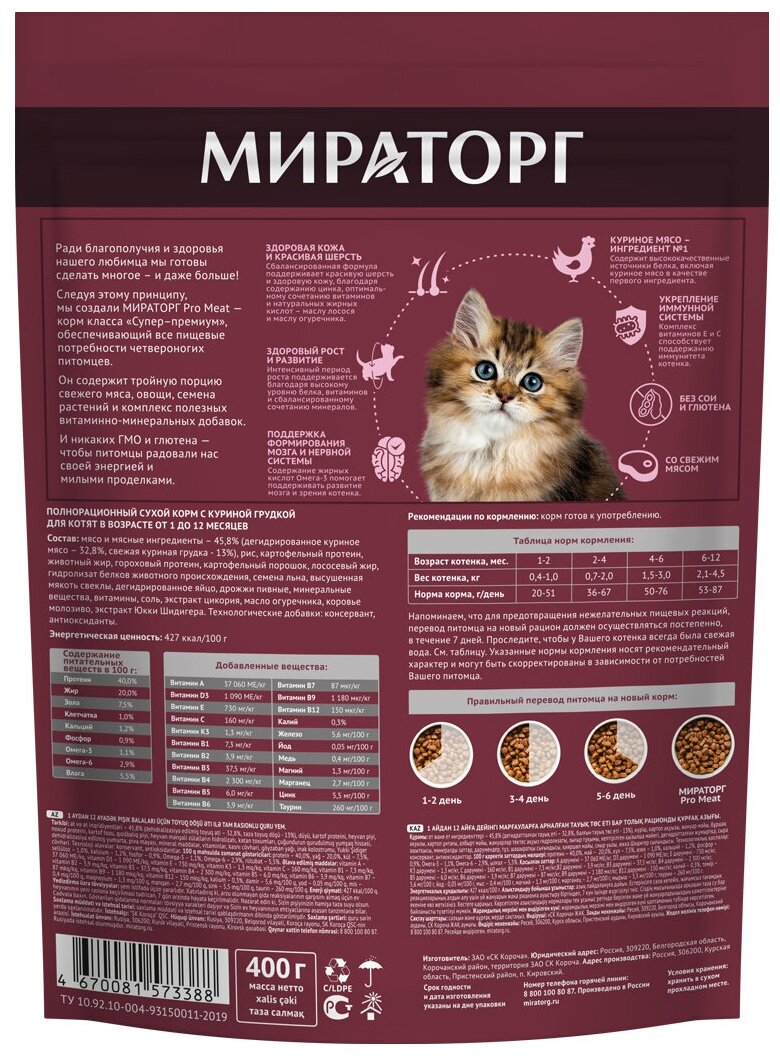 Winner Pro Meat Корм сухой с куриной грудкой для котят пакет, 400 гр интересное: