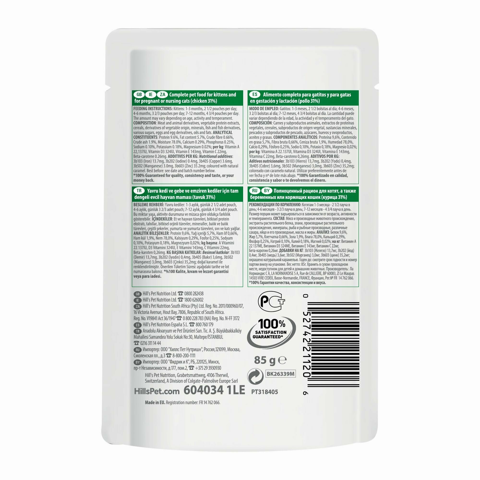Хиллс 604034 пауч для котят Курица 85г