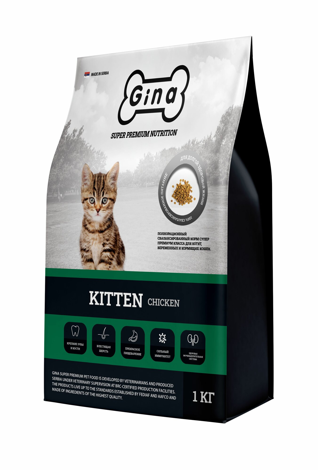 Купить Корм для котят, беременных и кормящих кошек сухой Gina Kitten Chicken, цыпленок, утка, 1 кг